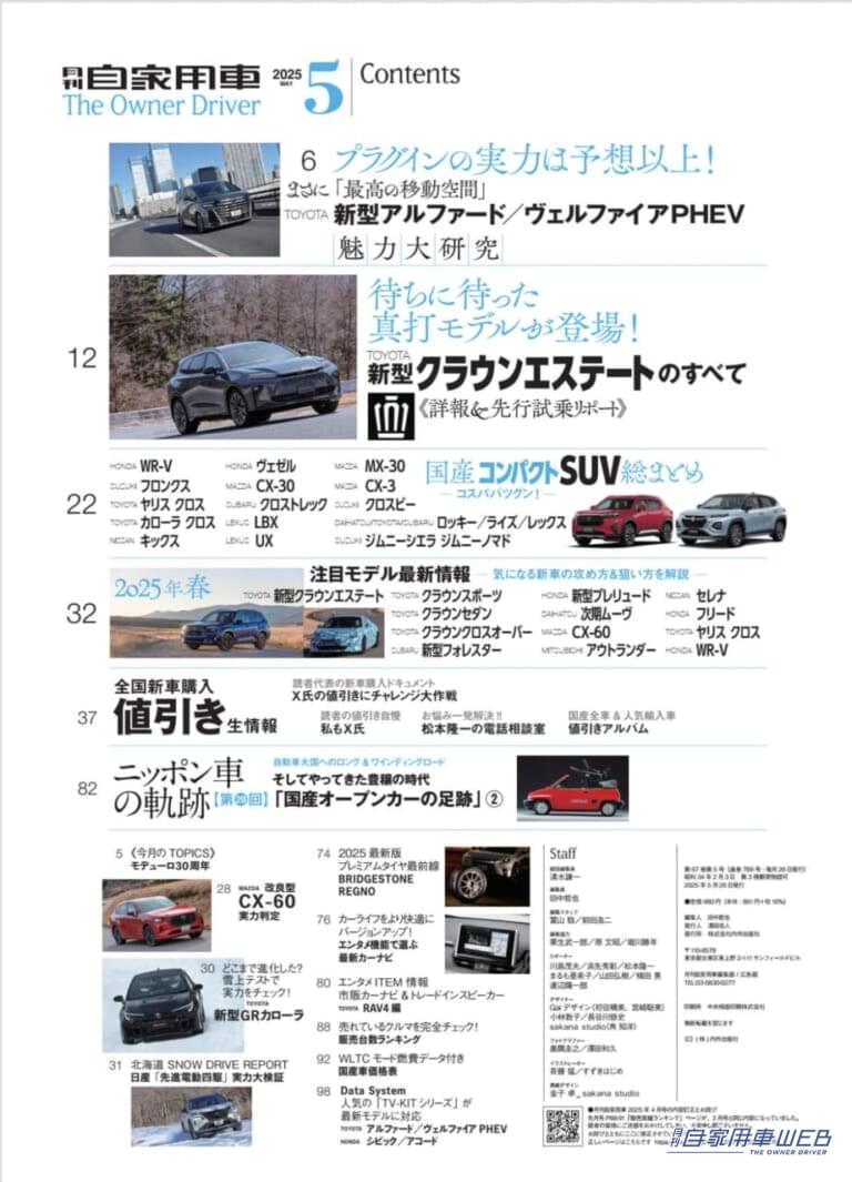 【月刊自家用車5月号発売】新型クラウンエステートのすべて 詳報&先行試乗リポート/アルファード&ヴェルファイアPHEV魅力大研究/新型WR-Vも登場!ライバル大激突!コンパクトSUV総まとめ/最新注目モデル攻略大作戦/全国新車値引き生情報etc.今月号も必見です!
