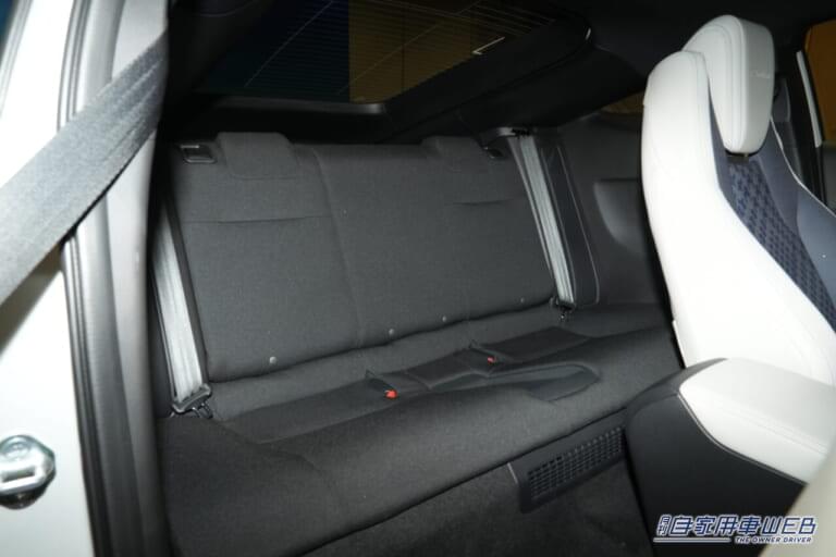 デートカーらしく前席は十分な広さ。前席シートは左右ともサイドサポートを備える身体を包み込むタイプだが、運転席側と助手席側で座り心地に違いをつけている。2座の後席シートは、足もとには少し窮屈感を感じるが、しっかりと座れるタイプ。プラス2的ではないことも最新クーペらしいところ。