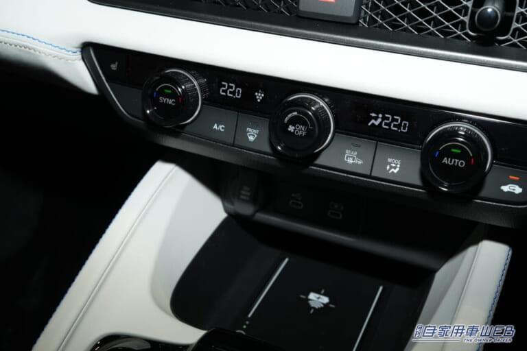 最近のホンダ車らしい水平基調が強いインパネデザイン。低めに取られたダッシュ部や開放的なウインドウの恩恵により、運転席からの見晴らしは良好で車両感覚が掴みやすい。運転しやすさにこだわった「直感Sport-HMI」の考え方が注がれたメーター&操作スイッチも見どころのひとつ。