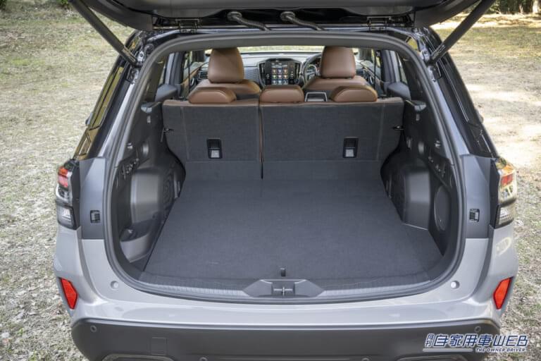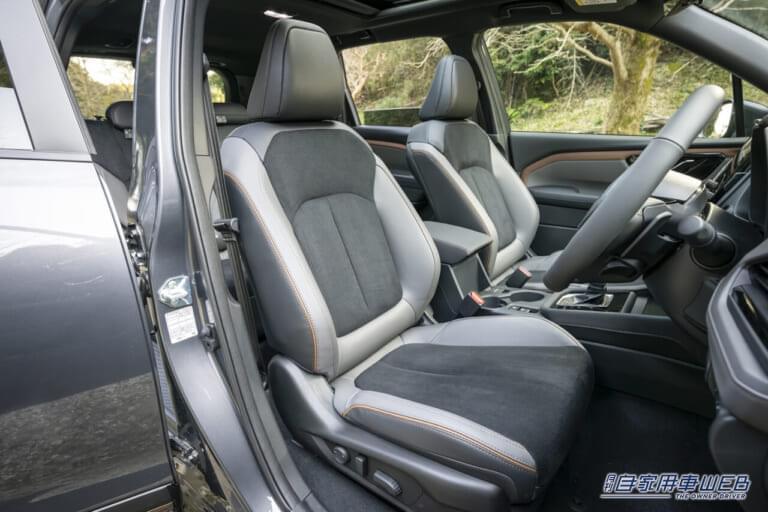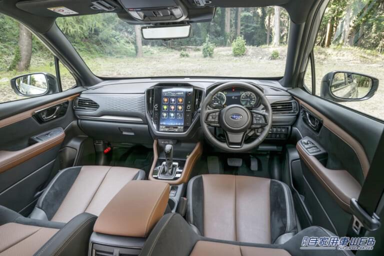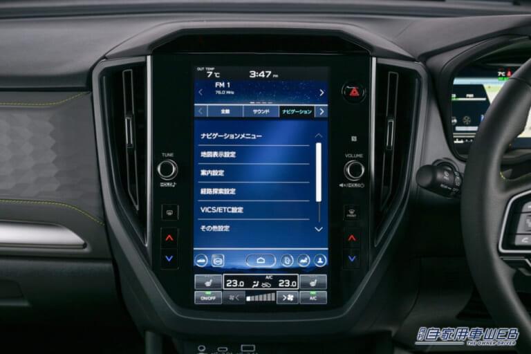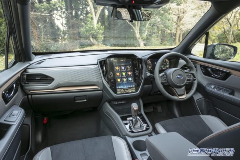 キャビンまわりの近代化も新型のポイントのひとつ。後半部の絞り込みを抑えたキャビンデザインなどレジャー用品の積載に適したプロポーションは従来型と同様だが、オーディオ&ナビユニットがインストールされていた2DINスペースが廃止され、その代わりにスバル車でお馴染みの縦長11.6インチのセンターディスプレイが採用されている。他モデルに対して1世代遅れていた車載IT機能が大きくジャンプアップしている。