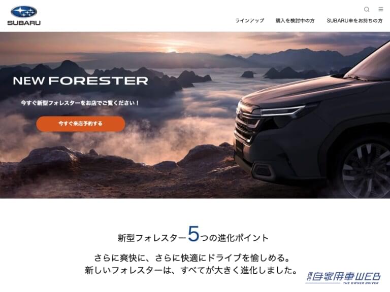 スバルは、新型フォレスターの特設サイトを開設し、導入間近の国内仕様車の情報を公開した。同時に4月3日より全国のスバル販売店で新型フォレスターの先行商談会も開始され、先行予約の受け付けも始まっている。