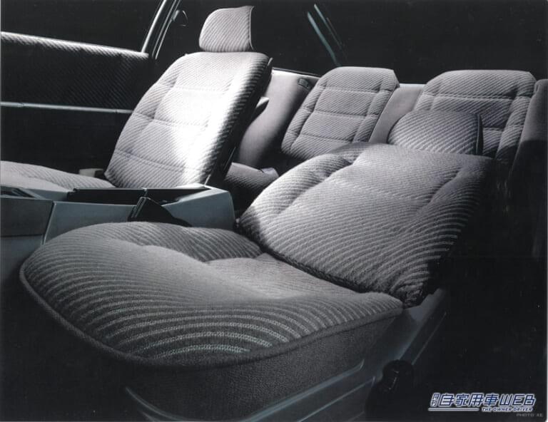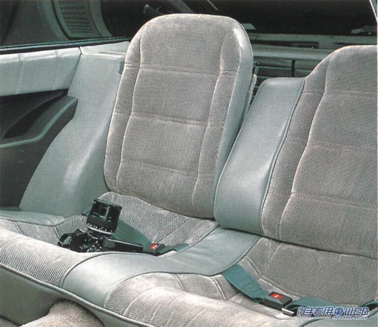シートもジウジアーロがデザイン。モダンな薄手のクッションは居住性の向上にも寄与。リクライニングは3段クイック付きの無段階、ランバーサポートも装備。クーペとしてはかなり優秀なレッグスペースと頭上空間で、リヤシートには4段階のリクライニング機構も備わった。シートは国産車にしては硬めだった。