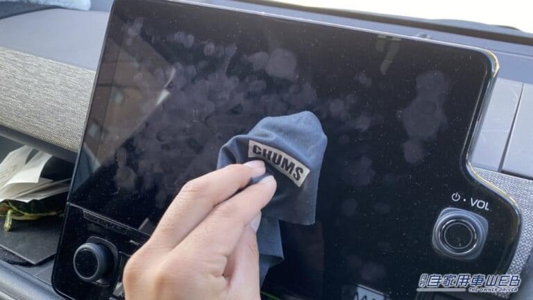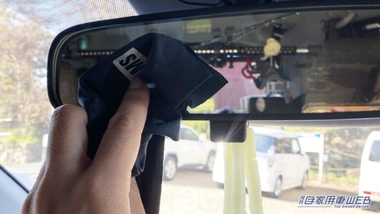 サングラスのついでに汚れから目を逸らしていたカーナビの画面。指紋がところどころ付いたバックミラーまで拭き上げる。ダッシュボードあたりに乱雑に置いてあるだけのメガネ拭きだったら、ここまで掃除することもないだろう。便利アイテムひとつで、ここまでキレイ好きになるのだ。