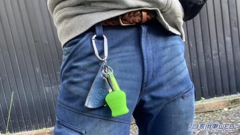 せっかく便利なストラップが付属しているので、車外へ持ち出すときはカバンやキーリングに装着しておけば、いつでもどこでもメガネ拭きを携帯できる。とはいえ四六時中メガネ拭きと行動をともにすることも無いので、今後は車内に積んでおくことになるだろう。