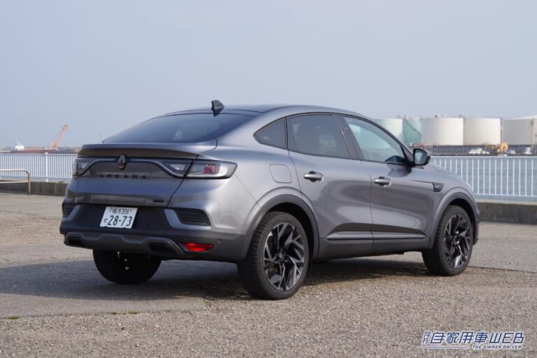 今回お借りしたクルマは、ルノー アルカナ エスプリアルピーヌのフルハイブリッドモデル。クーペのような流れるプロポーションに、SUVの力強い佇まいが融合したエクステリアが特徴的だ。