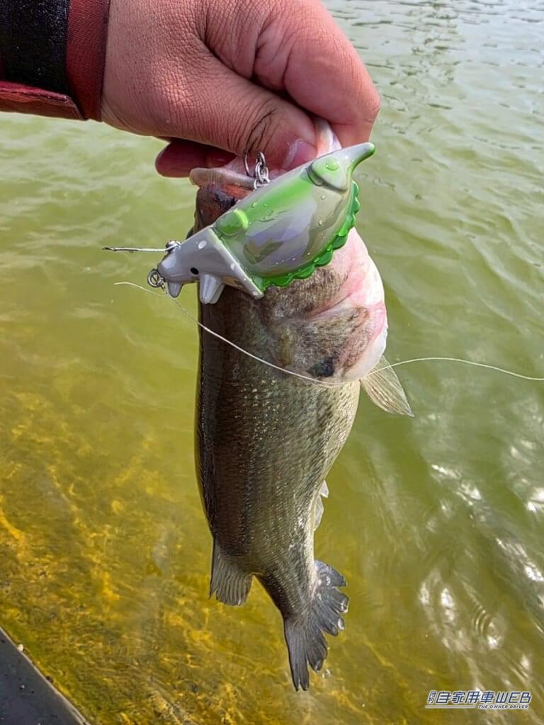 トリケラトプスでもキャッチ。色んなルアーで釣れるのもドリームレイクの魅力です。