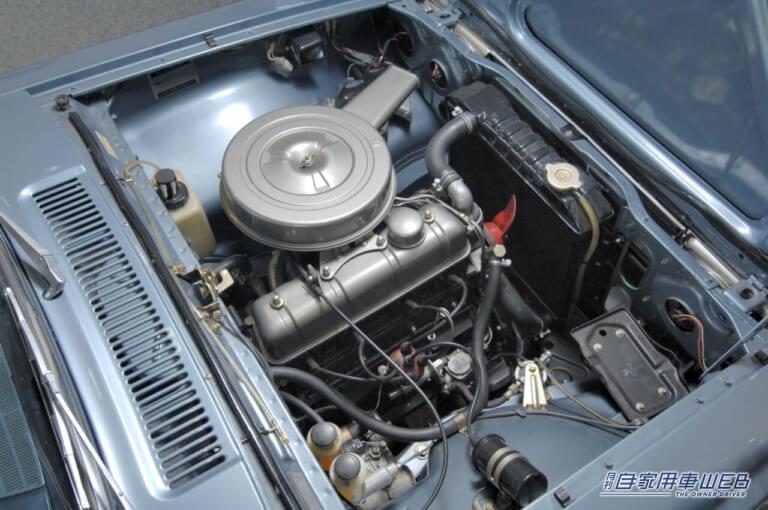 初代クラウンに積まれたR型をベースにボアを77ミリから78ミリに拡大、排気量を1453ccから1490ccとした2R型。吸排気系の大幅改良や補機類の材質変更により、エンジン単体重量はR型より5kg軽く、最高出力は62PSから70PSに向上している。