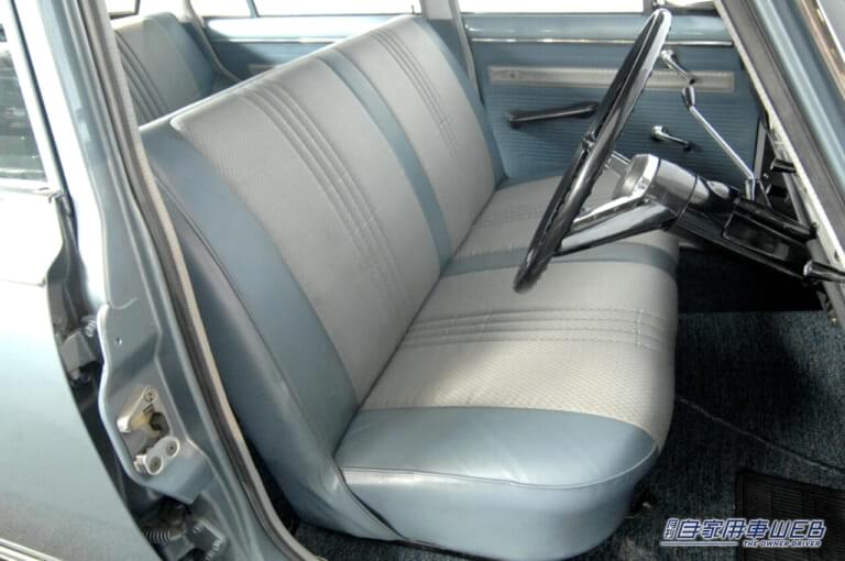 ベンチシートのほか、デラックスにはオプション(2万円高)でセパレートのリクライニングシートを設定。どちらも乗車定員は5人。リヤシートはホイールハウスを極力小さくすることで、幅や長さを拡大している。また後席天井付近にグリップがあり、コートハンガーとしても使えた。