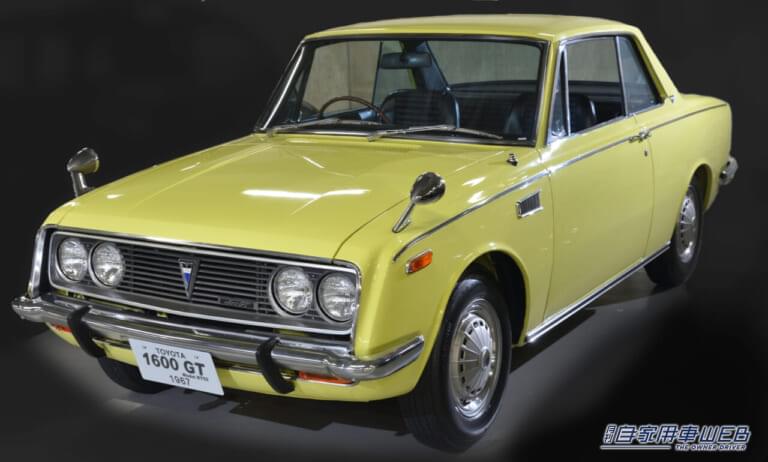 コロナのハードトップ(前期型)をベースに、150馬力のDOHCエンジンを搭載したレーシングカー「トヨタRTX」が1966年に造られ、多くのレースで活躍する。その市販型として1967年にデビューしたのがトヨタ1600GTだ。同年に発売されたトヨタ2000GT の弟分という位置づけから、コロナの名は冠されなかった。