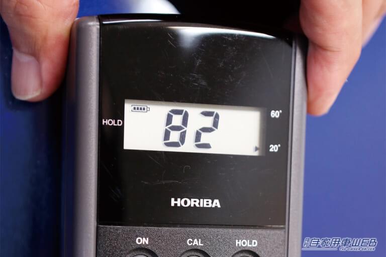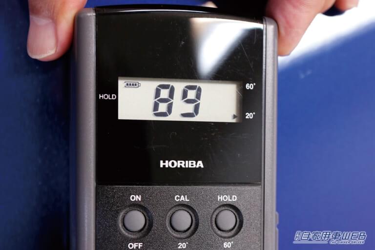 結果から言うと、ワックスは89で、コーティング剤は82という数値に。どちらも輝きはちゃんと向上しているのがわかる。