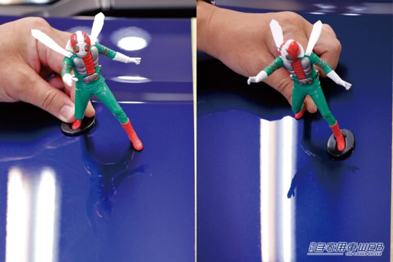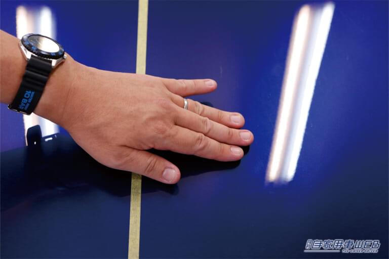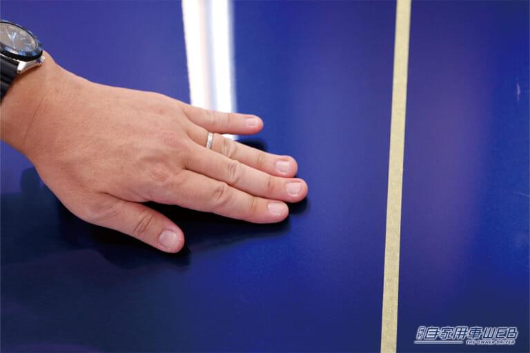 機械的な測定値の次は、人間の感性による検証、仕上がり表面の触った感覚の違いを比較していく。実は、この項目が明らかに大きな差があった。触り比べればすぐにわかる、圧倒的になめらかなタッチなのがワックスだ。すべすべの表面だが、油分が手につくような感覚は皆無。一方で、コーティング剤の方はなめらかさはあるのだが、キュッキュッとした触感でワックスとは全く異なる印象を受けた。