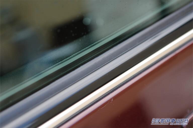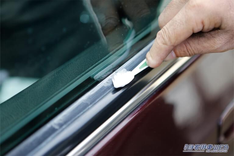 ウインドウモールの下部にあるゴム系のパーツ付近には、ホコリや汚れとともに雨水が滞留するため、手入れを怠るとカビのような藻のような有機物が発生して、愛車の見た目の印象が悪くなってしまう。