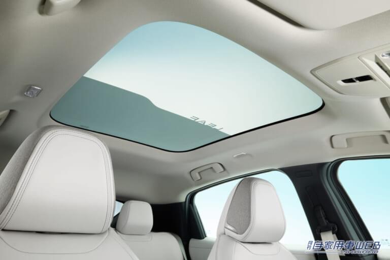 電子調光技術を用いることでガラスの透明度を調節できる調光パノラミックサンルーフを採用。ガラス部には赤外線反射コーティングを用いることで、高い遮熱性能も確保されている。