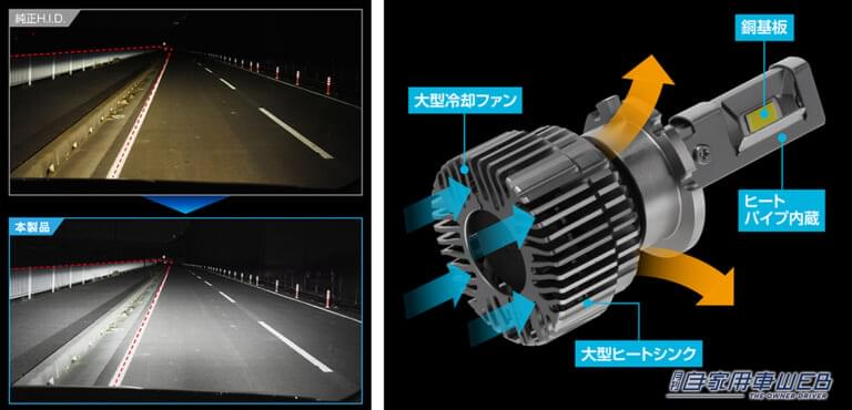 一方、HID車オーナー向けに開発されたのが「GIGA LEDヘッドバルブ D9 6000K」だ。この製品は、カーメイトの本気度がうかがえる、高いパフォーマンスを発揮するモデルとなっている。