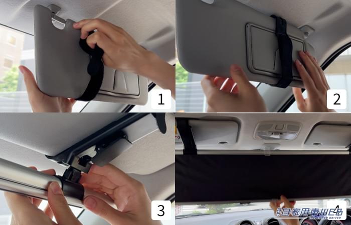 VANIワンタッチサンシェードは、難しい工具や設置作業も不要だ。サンバイザーにベルトを巻きつけるだけで固定できる。新しく改良されたバンド固定式により、さらに取り付けが簡単になった。