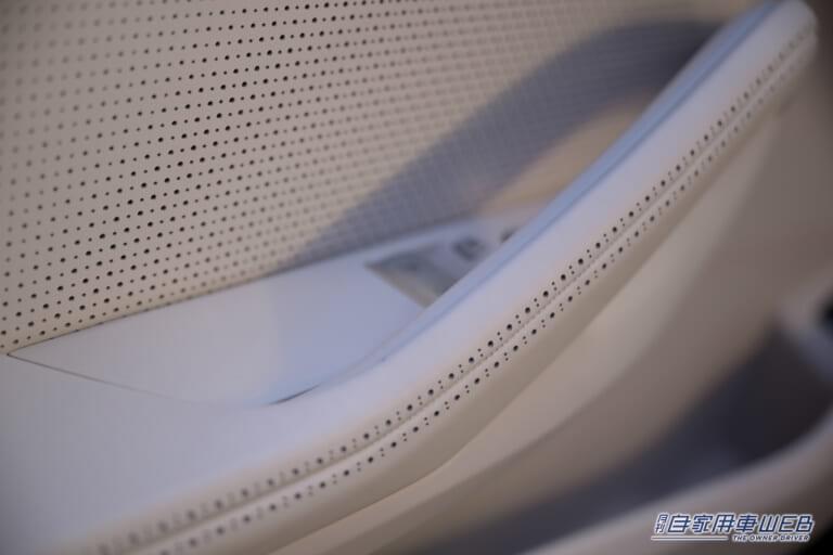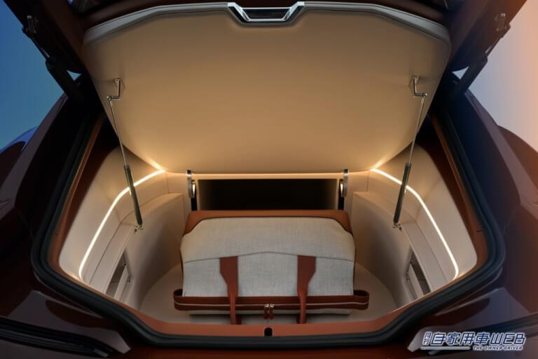また、エクステリアで特徴的だったルーフ中央のスプラインは、インテリアではツートンカラーのレザーヘッドライナーに埋め込まれた光のビームとして呼応し、乗員を優しく包み込む間接照明として機能する。