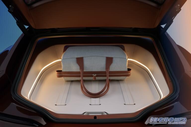 イタリアのハイブランド「スケドーニ」にオーダーメイドしたウイークエンドバッグをトランクルームに搭載。トランクルームは2段底に設計されており、大型のウイークエンドバッグはシチュエーションに応じてトランクルーム内に収納される。