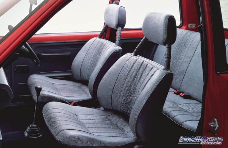 シートバック上部を思い切って切り下げたユニークな形状のローバックシートだが、当時の記事ではとくに横方向のサポート性の良さを絶賛する声も多かった。なおRのリヤシートはワンタッチで取り外せるデタッチャブル式になっていて、取り外したシートは野外ソファとしても使えた。