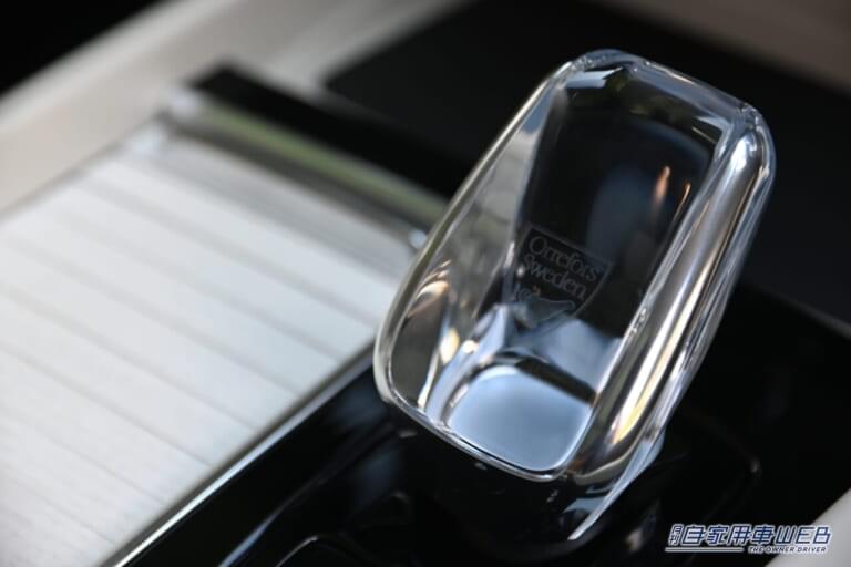 クリスタルシフトノブは、スウェーデンの老舗ガラスブランド「オレフォス」の職人技が光る逸品。透明感のあるクリスタルガラスが、車内に上質でエレガントな雰囲気を高めてくれる。