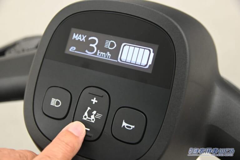 操作も非常にシンプルだ。右手のアクセルと後退スイッチ、左手のブレーキ、コンソールの速度切り替えスイッチ/警報音スイッチ/ヘッドライトスイッチのみ。実際に走るときの加速減速は、アクセルのみで済んでしまう。アクセルを戻したときの回生ブレーキは強めで、アクセルの操作だけでも、停止状態まで持っていける。