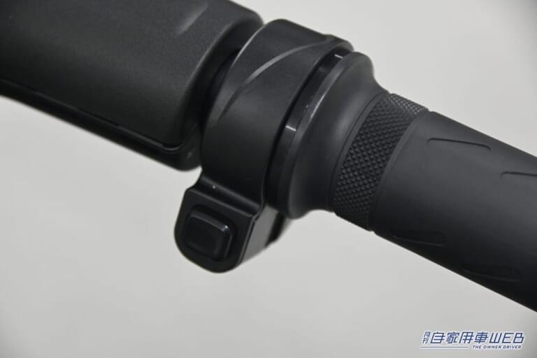 「e-SNEAKER」は、操作が非常にシンプル。ハンドルの右手側にはアクセルと後退スイッチが備えられている。