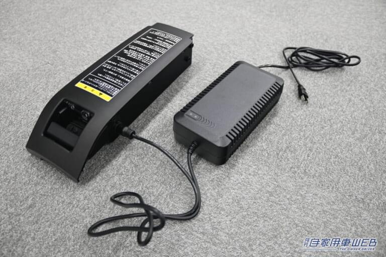 持ち運びがしやすい脱着式軽量バッテリーを採用。バッテリーの重量は2.5kg。約2.5時間で満充電となり、一充電での連続走行距離は12kmとなる。