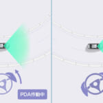 Bi-BeamLEDヘッドランプ+LEDターンランプ+LEDクリアランスランプ(デイライト機能付)左がLEDデイライト点灯状態、右がLEDターンランプ点灯状態。