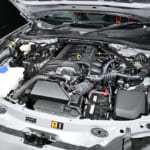 12Rのキャビンには、バケットシートや4点式ベルトが用いられるなど、サーキット仕様を意識させるスパルタンな内容が注がれる。2Lエンジンは、専用カムシャフトやピストンなどを採用し、1基ごとに手組みで製造されるスペシャルユニットになる。
