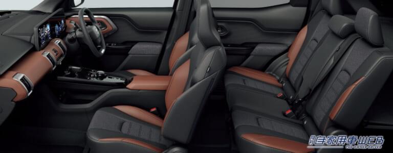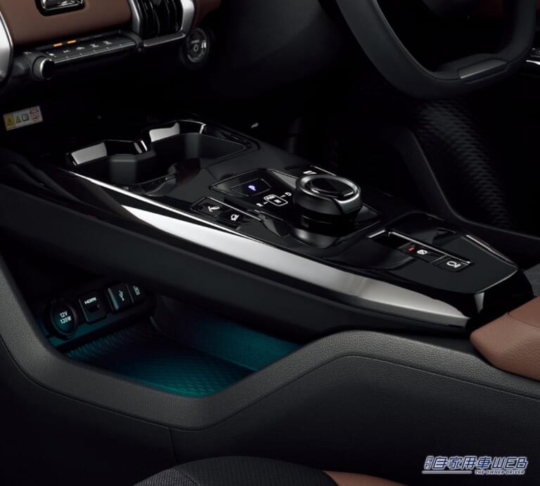 インテリアは、ブラックとブラウンを基調とし、上質さを演出。10.1 インチのセンターディスプレイと 10.25 インチのメーターディスプレイを統合させ、直感的にもわかりやすく、操作性に優れた「インテグレーテッドディスプレイシステム」や、フローティングしたセンターコンソール、アンビエントライトなどにより、先進的な空間も追求する。