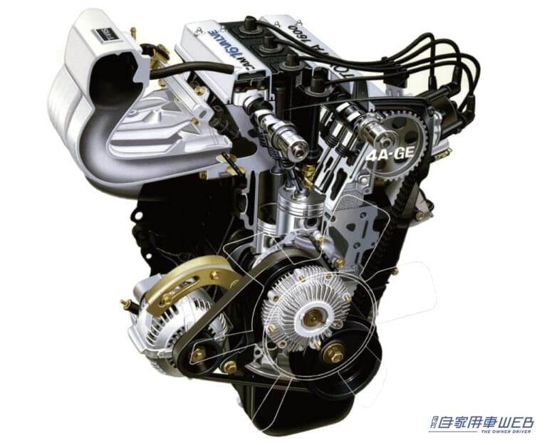 新たに開発された直列4気筒DOHCエンジン。当時の同クラスエンジンと比較して軽量かつコンパクトで、高回転までスムーズに回るフィーリングや鋳鉄製のシリンダーブロックによる高い耐久性で高評価を得た。AE86の搭載されたNA16バルブエンジンは、グロス表示で130psを発生した。