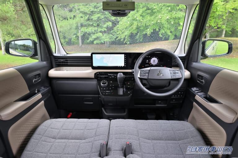 インパネデザインは、姉妹車の「eKスペース」「ルークス」と共通の基本デザインを採用。12.3インチのセンターディスプレイと7インチのメーターパネルが連続した一枚構造のディスプレイが、先進性を感じさせる。