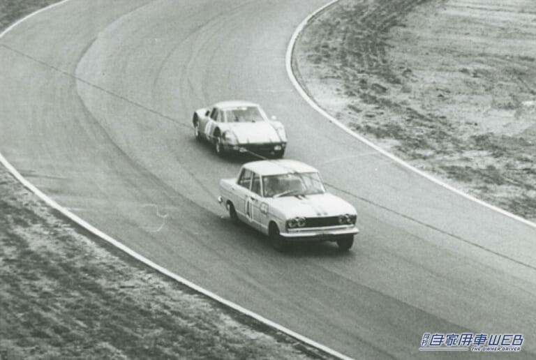 一見、箱形乗用車風シルエットのクルマが、流線型シルエットの西ドイツ製レーシングカーを追走する場面は、当時、世界レベルを照準とした国産車の高性能の象徴として、"羊の皮をかぶった狼"というあまりにも有名なフレーズと共に語り草になっている。