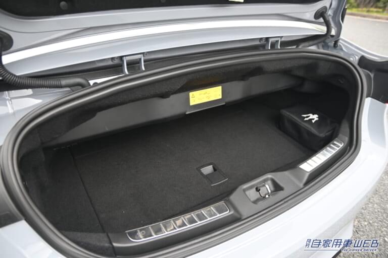 折りたたみ式のソフトトップは、トランクスペースへの干渉を最小限に抑えるよう設計されており、4人分の十分な空間が確保される。