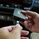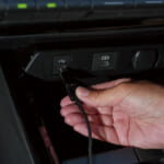 付属のUSBケーブルを本体の端子に差し込み、次にそのケーブルをクルマの純正USBポートに接続するだけ。専門的な知識や工具はまったく不要で、簡単に取り付けが完了できる。