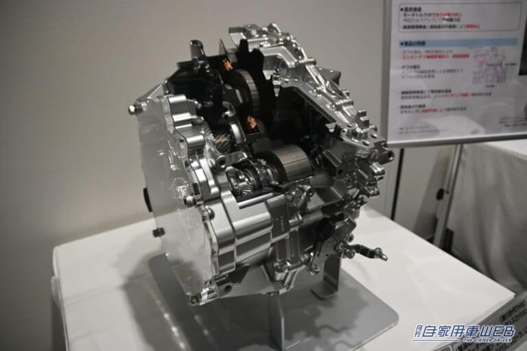 アイシンがタイで生産するFF2モーター・ハイブリッド。三菱「エクスフォース」に搭載される。アイシンのハイブリッド海外生産としての初めてとなる。