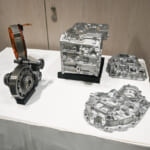 アイシンのコア技術として、トランスアクスル技術のケースとギア、モーター技術のモーターが展示された。