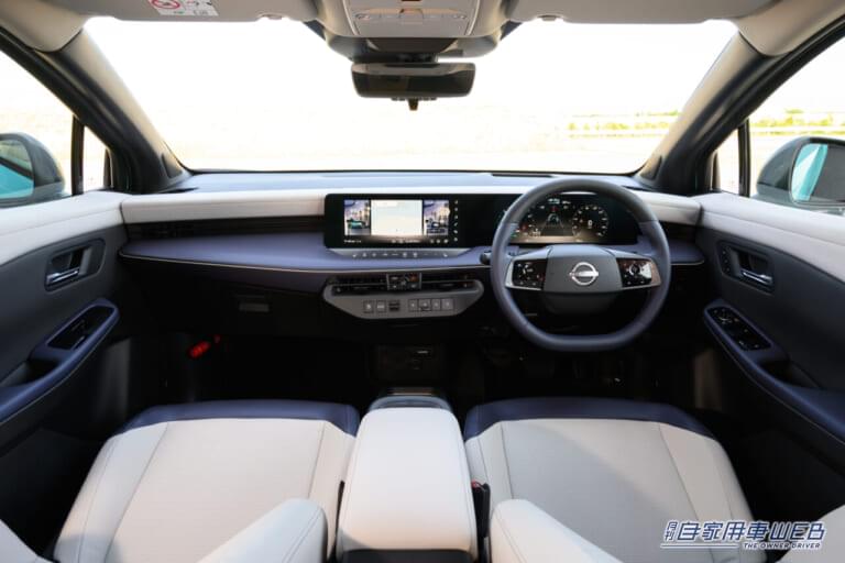 インテリアは、CMF-EVプラットフォームの採用によりフラットなフロアと開放感のある足元空間を実現。横に広がるフローティングデザインのインストルメントパネルは、落ち着いたミニマルな雰囲気を醸し出すほか、日産初となる調光パノラミックガラスルーフ(遮熱機能付)やBose®パーソナルプラスサウンドシステム(10スピーカー)なども搭載される。