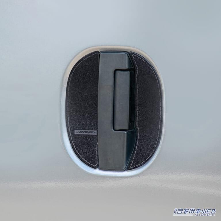 このドアハンドルプロテクターは、ドア開閉時の爪跡・キズ防止だけでなく、レザー調のデザインによりドアハンドル回りのドレスアップとしても秀逸。フチはステッチ風のデザインになっているため、ワンポイントアクセントにもなる。 素材は自動車メーカーの純正採用部品と同等の高品質PVC材を採用していて、ディテールにもこだわりをもっている。 ちなみにIPFのロゴは、控えめに一枚ずつにあしらわれている。 ※装着はドアのくぼみ形状に合わせ、強力な両面テープによる圧着固定となっている。