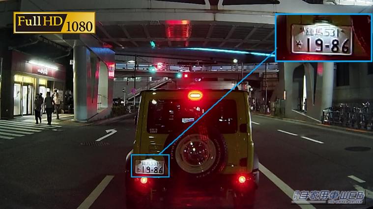 フロントとリヤカメラはクリアな視界と高画質録画を実現する高解像度200万画素のフルHDカメラ仕様。さらに、OMNIVISION製のCMOSセンサー「PureCel Plus」を採用している点も見逃せない。夜間でも鮮明な映像を撮影できる「ナイトサイト」に対応。昼夜を問わず、ナンバープレートの文字まではっきりと記録できるくらいの実力だ。