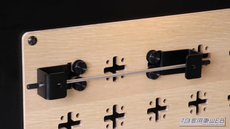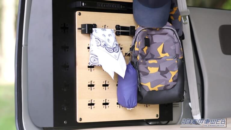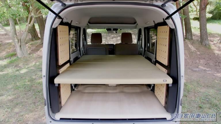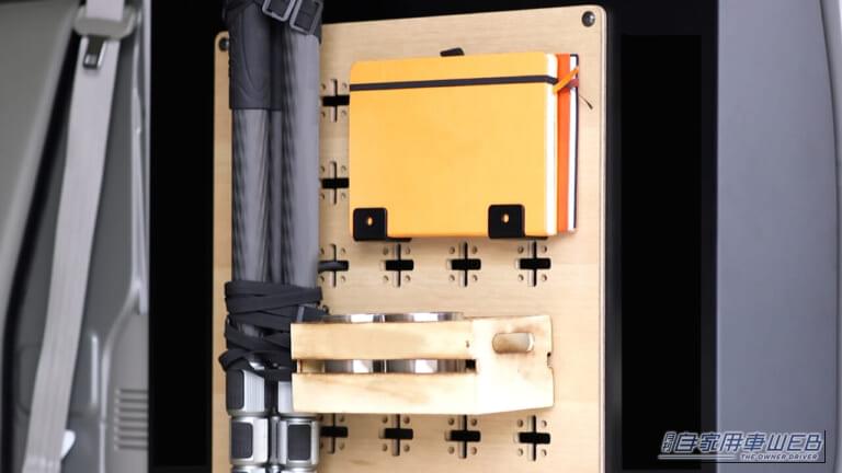 オプション設定として、耐水性・撥水性に優れたCORDURA製生地のベッドマットを用意する。これは脱着可能で、装着位置の高さは4段階調整できるため、車中泊仕様車としてもとても魅力的。有孔ボード、専用フロア、ベッドマットの色は、ナチュラルベージュとブラックから選択できる。スッキリとしたスマートな仕上がりの良さはメーカー直系ならではだ。