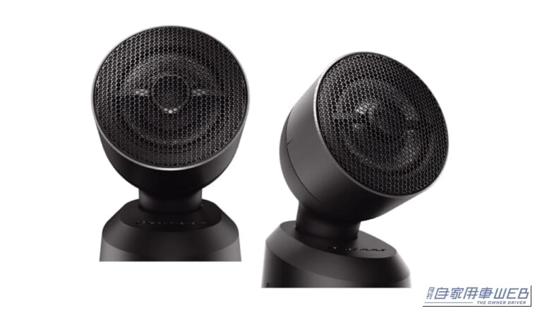ブラックの本体に大口径のシルバーリングをあしらった2.9cmトゥイーターは、車室内でも目を引く、ほど良い存在感を醸し出す。インテリアを邪魔しないスマートな佇まいのデザイン。