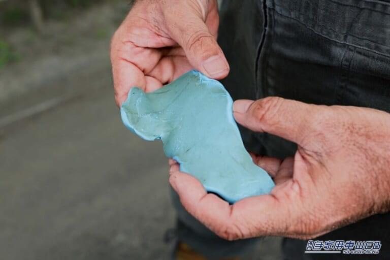使用方法はシンプルだ。まず水に浸して柔らかくし、手のひらサイズに成形する。次に霧吹きで塗装面全体に水をスプレーし、滑りを良くしてからネンドをやさしく滑らせていく。乾いた状態でこすると傷の原因になるため、水の膜を切らさないよう注意することが大切だ。