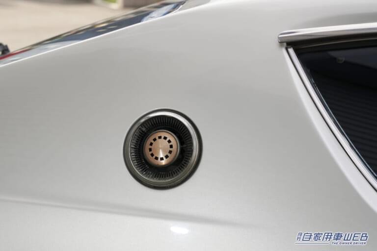 ケンメリスカイラインのCピラー。助手席側(左側面)が給油口になる。ちなみに右側面はエアベントの機能が割り振られている。