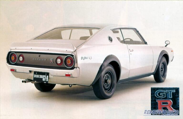 この頃のスカイラインは、先代の「ハコスカ」のときからリヤのタイヤハウスの間に横長のガソリンタンクが装着されているために、左リヤフェンダーの上付近に給油口があるのがパターンでした。