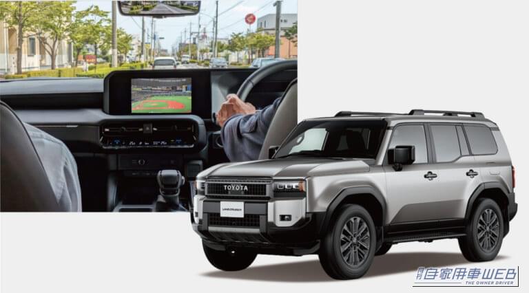 ランドクルーザー250での装着例。トヨタ純正のディスプレイオーディオのフィット感を損なうことなく、走行中でもTV画面の表示が可能になる。