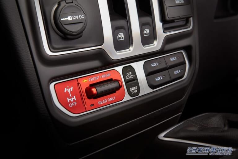走破性をさらに向上させる4:1低レンジギア比を備えたロックトラック・フルタイム4×4システムや、スイッチ操作でスウェイバーを切り離しサスペンションの可動域を最大化する電子制御式スウェイバーディスコネクトなど、過酷な地形をも走破するための装備を標準搭載。堅牢なボディと高い走破性により、日常から冒険までのシーンで活躍することが可能。