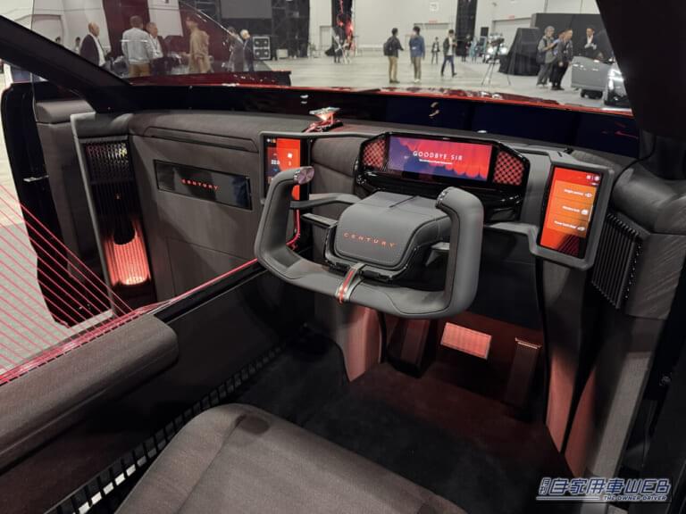 ただ、コックピットがドライバーにとって退屈なスペースという訳ではない。航空機を思わせるU字型ステアリングとコラム部に集中配置された多重情報表示パネルは、近未来的なスポーツカーを思わせ、VIP席と分離させた空間設定もあって、フォーミュラーカーのようなモノポスト的な印象も感じる。