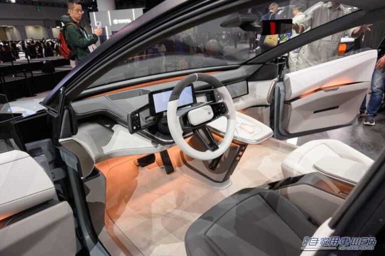 しかし、このプロトタイプの真価は、その見えない部分、すなわちプラットフォームに見いだせる。次世代カローラは、ICE(内燃機関)、HEV(ハイブリッド)、PHEV(プラグインハイブリッド)、BEV(電気自動車)の4種類のパワートレーンに対応する予定であり、今回展示されたカローラ コンセプトはBEVモデルであった。低く抑えられたボンネットやカウルトップは、BEVに最適なパッケージングを物語っている。