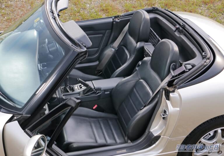 シートは人工レザーを採用し、オープン時の突然の雨で少しくらい濡れても簡単に拭き取れる。囲まれ感のあるシートはとてもスポーティに仕上がっている。