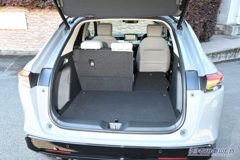 独自の低床構造により後席まわりの余裕もクラストップ級。後席格納時の荷室は完全フラットになるなど、スタイリッシュな風貌とは裏腹に、便利で快適に使い倒すことができる。実用車としても優秀だ。